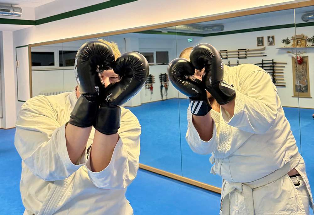 Traditionell suchen wir uns für diesen Abend ein Thema aus, bei dem alle gemeinsam arbeiten, unabhängig vom individuellen Leistungsstand. In diesem Jahr wurden die Handschuhe ausgepackt. Kata based Sparring stand auf dem Plan. Ein Konzept das der britische Karate Lehrer Iain Abernethy seinerzeit entwickelt hat. Eine Methode die Elemente einer Kata in einen Reaktionsdrill umzuwandeln, mit dem dann Kata Anwendung (Oyo-Waza) auf ein etwas realistischeres Podest heben kann.